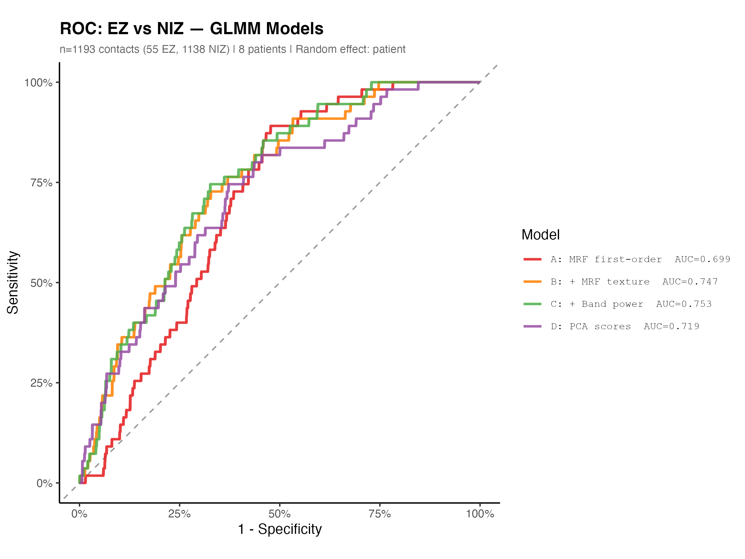- Contact-level EZ vs. non-EZ Spearman correlation framework